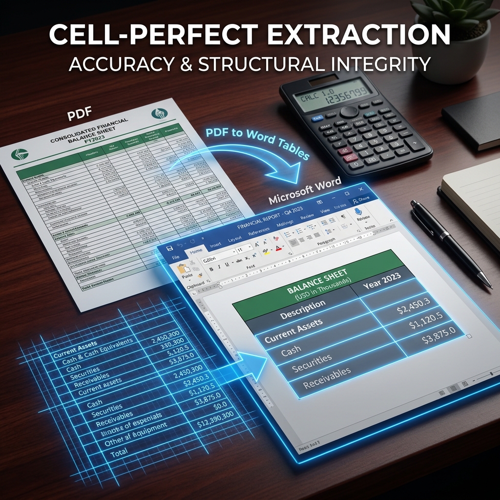 جداول منظمة | حول تقارير PDF المالية إلى مستندات Word مع بقاء الخلايا دقيقة