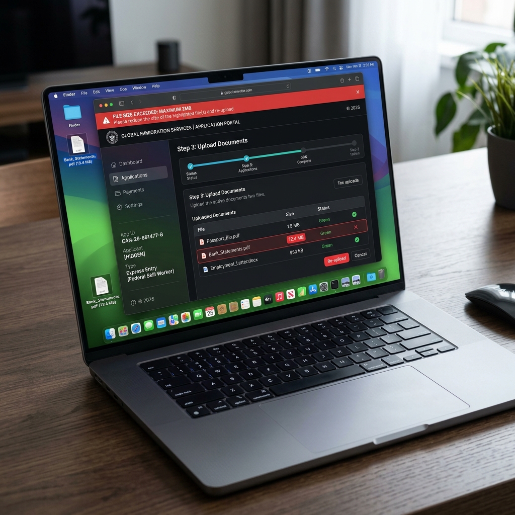 It is 11:15 PM, and your visa application deadline is tomorrow morning. You have finally scanned your last bank statement, birth certificate, and employer letter. But as you hit “Upload” on the CEAC portal or the Canada IRCC system, a red error banner stops you cold: “FILE SIZE EXCEEDED: MAXIMUM 2MB.”